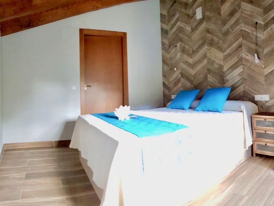 La casa cuenta con tres dormitorios con cama de matrimonio King Size (2mx1'50m) y cuarto de baño completo con ducha en cada habitación.